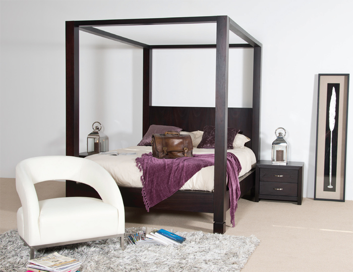| A-013 Leather Armchair, Domino Four-Poster Bed and Genova Pedestals |