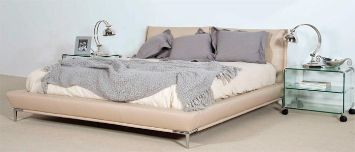 B-207 Leather Bed and Glass Pedestals |