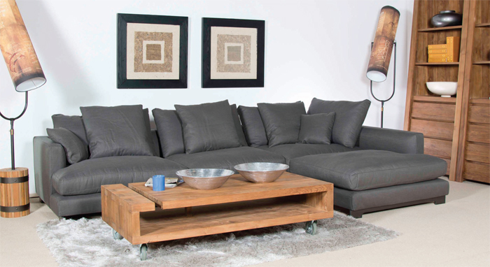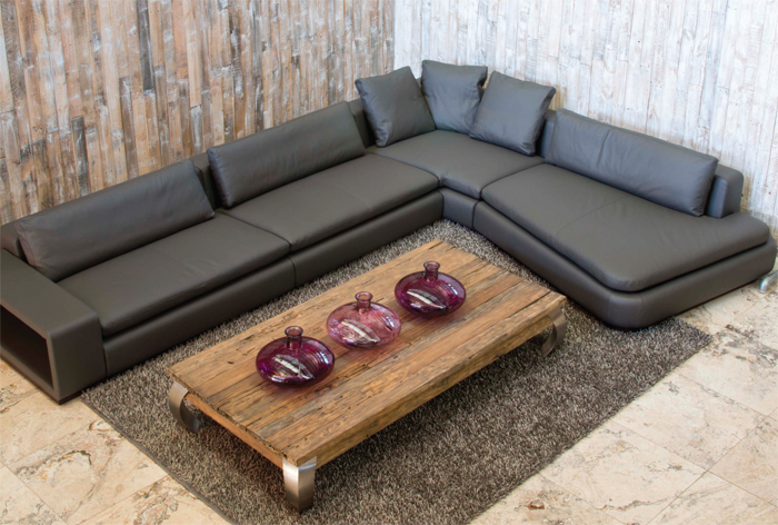 Lazytime Corner Sofa and Rustic Coffee Table on Wheels |