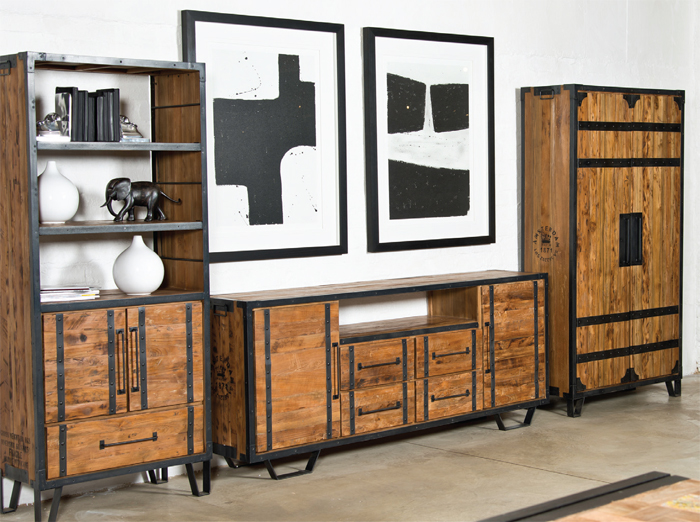 | Domus 630 5 piecce Corner, Rustic Coffee Table and Dolly 2-door Cabinet |