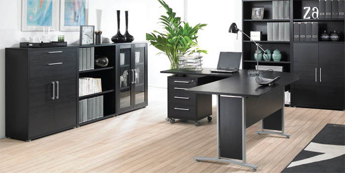 | Prima Black 1500 Desk, 1200 Desk, Corner and Bookcases |
