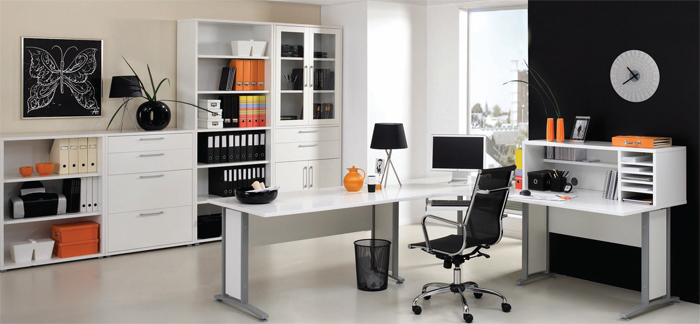 Prima White 1500 Desk, 1200 Desk, Corner and Bookcases |