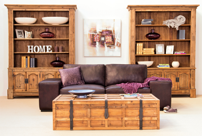 Rustic Open-top Bookcase, Clubman Leather Sofa and Trunk Coffee Table |