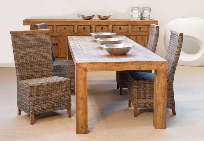 | Straight Leg 2 Metre Dining Table, Charles Chair and Rustic Overhang Sideboard |