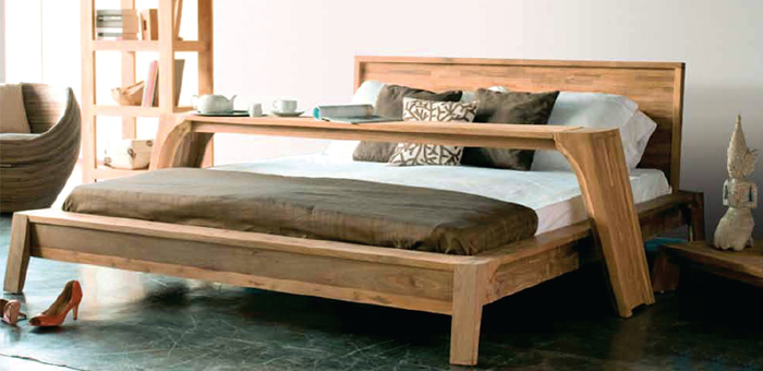 Trapesium Queen Size Bed, Pedestal and Bed Tray |