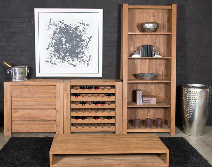 | Trapesium Chest, Winerack and Tall Bookcase |